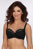 A Kamile szivacs nélküli melltartóban minden megvan, amire a telt kebleknek szüksége van. A T-alakú kosaraknak van egy támogató oldalsó része és egy magasabb középrésze, hogy szépen alátámassza a melleket. A pántok puhán párnázottak.