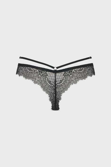 A csábító Karena tanga áttetsző csipkébe és mutatós strappy pántokba öltözteti vonalaid. Fűszerezd meg a kettesben töltött pillanatokat!