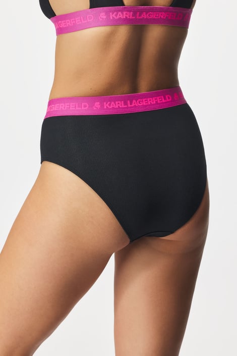 Klasszikus szabású Karl Lagerfeld Logo női alsó finoman bordázott, hihetetlenül selymes modál anyagból. Magasabb derékrésszel és mélyen kivágott combkivágásokkal készült, a márka logójával díszített lapos gumival kiegészítve.