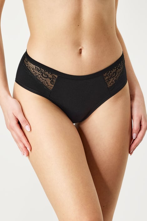 Katy klasszikus szabású női alsó, puha pamut anyagból. Csípőrészen finom csipkével kiegészítve.