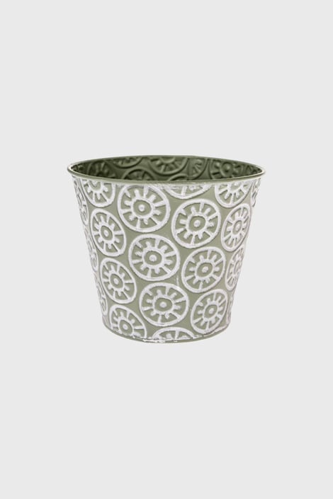 Változtassa a közönséges virágkaspót dizájner darabbá. Mindössze erre a gyönyörű, dombornyomott virágmotívummal ellátott fém virágkaspóra van szüksége.