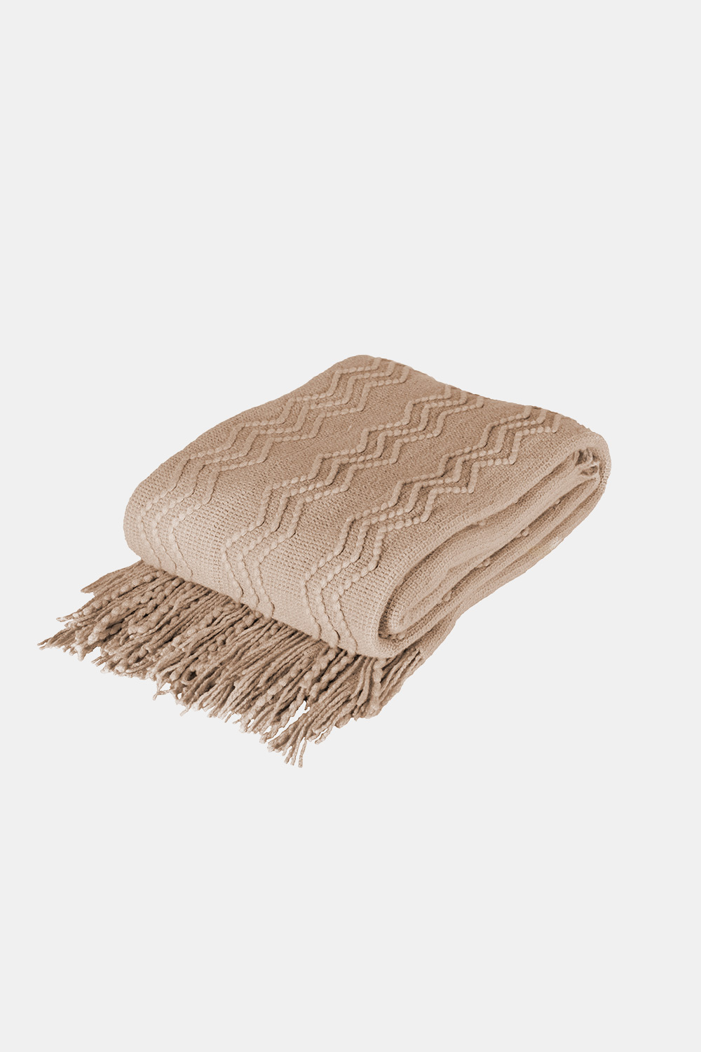 A Marilyn Latte kötött ágytakaró 100%-os meleg akrilból készült, és sokoldalúan használható. Használhatja ágytakaróként, letakarhatja vele a kanapét, vagy bele bújhat tévénézés közben. Dombornyomott geometrikus mintával és rojtokkal díszítve.