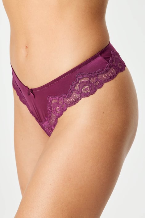 Lace and Shiny brazil bugyi visszafogottan csillámló mikroszálas anyagból és finoman hímzett csipkéből. A hízelgő szabás kecsesen kerekíti a feneket.