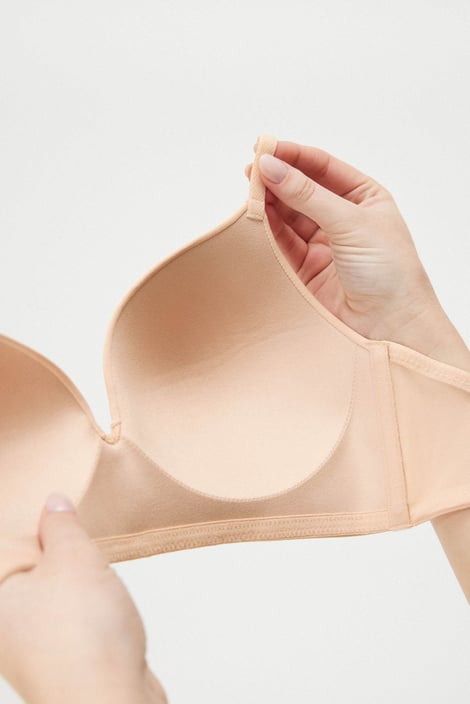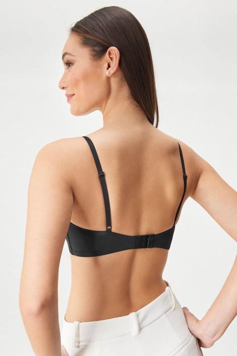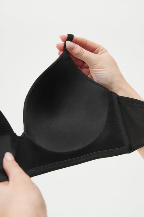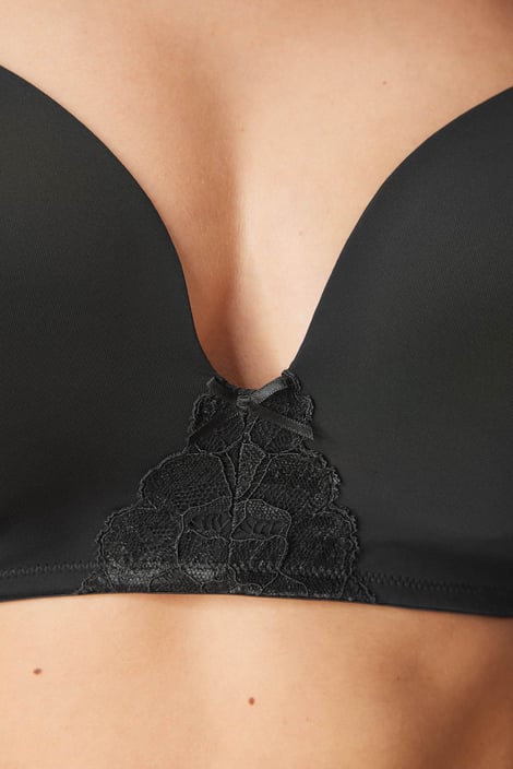Laurin sima felületű melltartó, bársonyosan selymes mikroszálas anyagból. A klasszikus merevítők nélküli, bélelt kosarak finoman ölelik át a kebleket, és szükséges támaszt biztosítanak. A melltartó középrésze a háromszög alakba szabott csipkével díszített.