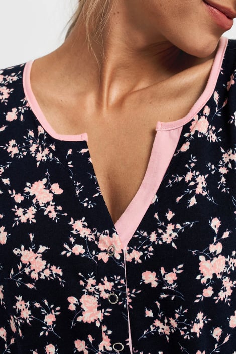 Leonia szoptatós hálóing, 100%-os pamutból, virágos dizájnban. A patentos záródás nagyon kényelmes és könnyen használható.