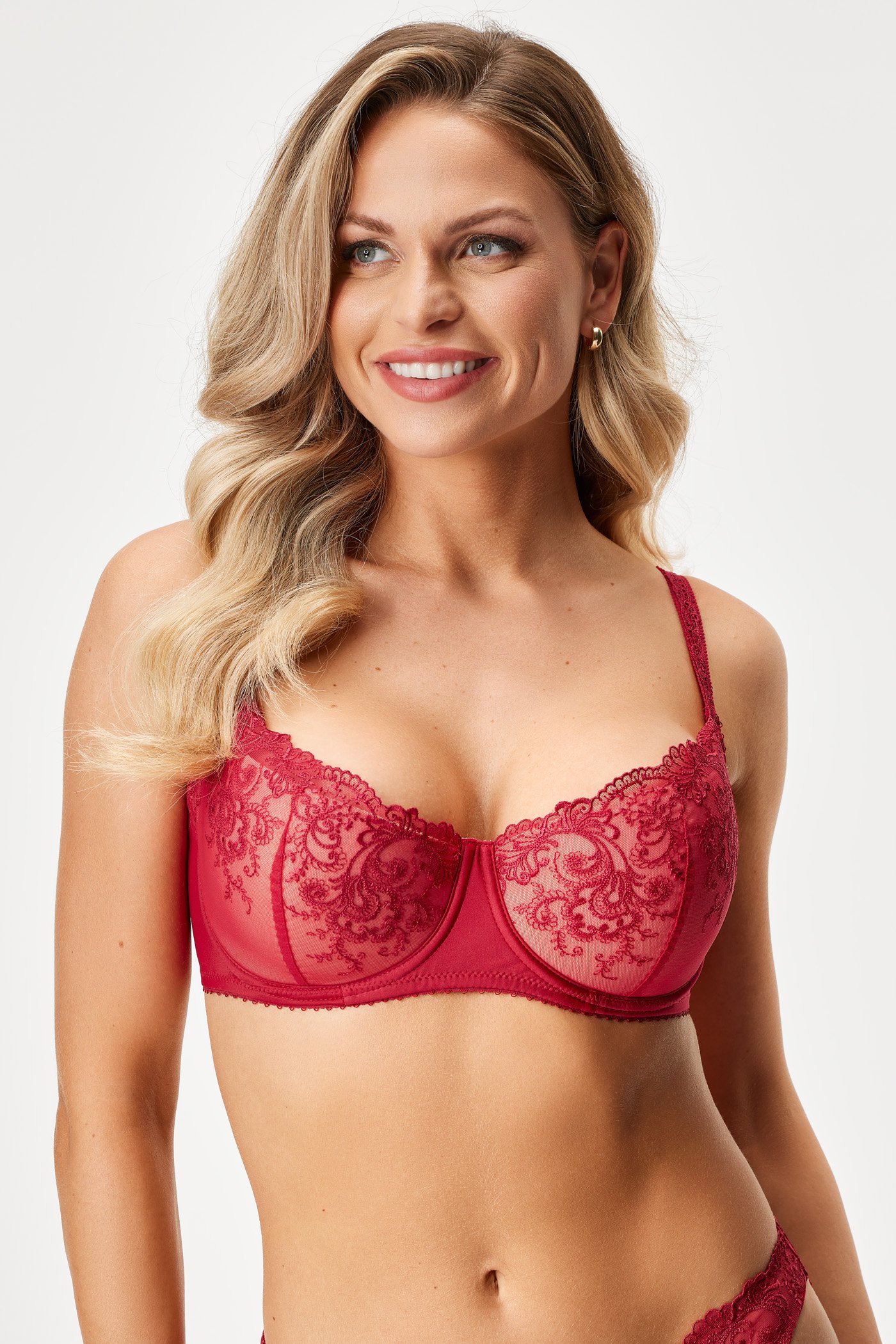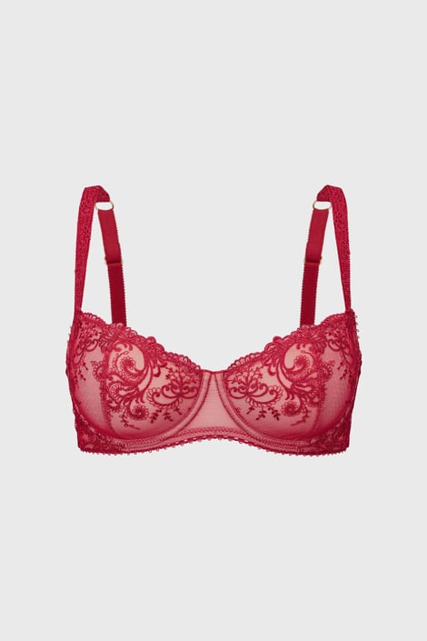 Love Mood párnázás nélküli melltartó a kivételes nőiesség érzéséért. A kosarak puha tüllből készültek, amely olyan könnyű a testen, mint a pókháló, és természetesen formálja a melleket. A finom keleti hímzés finoman hangsúlyozza a dekoltázst. Az Astratex műhelyéből.