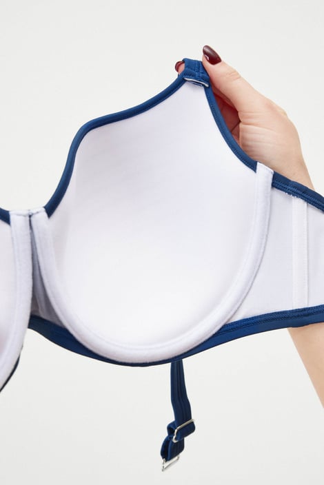 A tengerész dizájnú Marine Chic gyorsan száradó bikini kényelmet nyújt az tested számára. A melltartó rész tágas merevítős Spacer kosarakkal rendelkezik, amelyek légáteresztőek és megbízható támogatást biztosítanak a melleknek. Az állítható hosszúságú vállpántokat a hátrészen lekapcsolhatod és akár keresztezheted is őket. A sima és egyszínű kialakítást elöl csíkok és ezüst elemek egészítik ki. Magasabb derékrésszel rendelkező, klasszikus bikinialsóval egészül ki. Az Astratex szakemberei által tervezve.
