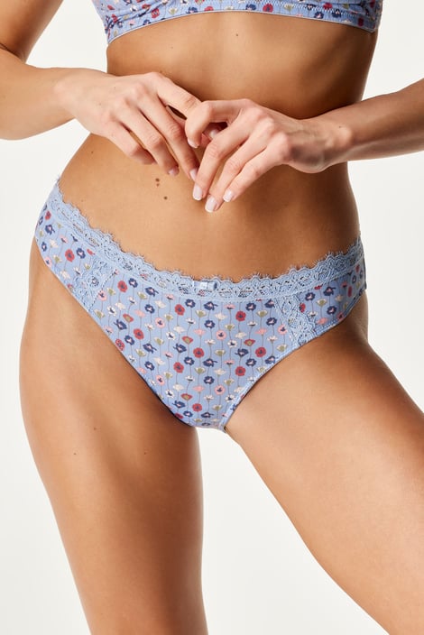 A klasszikus szabásban készült Meadow női alsó finom virágos tónusokat visz a fehérneműs fiókodba. A sima felületű mikroszálas anyag a testen kellemes, és könnyen alkalmazkodik a női vonalakhoz. Derékrészen puha csipkével díszítve.