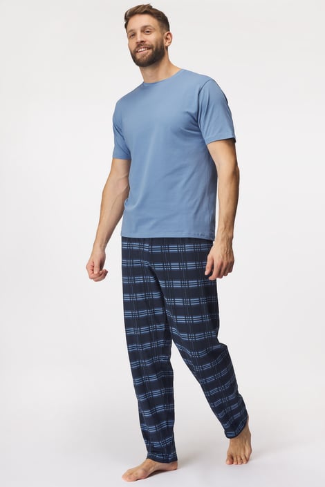 MEN-A Holiday pamut pizsama puha anyagból, komfortos bővebb szabásban. Sima felületű póló és derékban gumival készült pizsamanadrág. Az Astratex szakértői által tervezve.