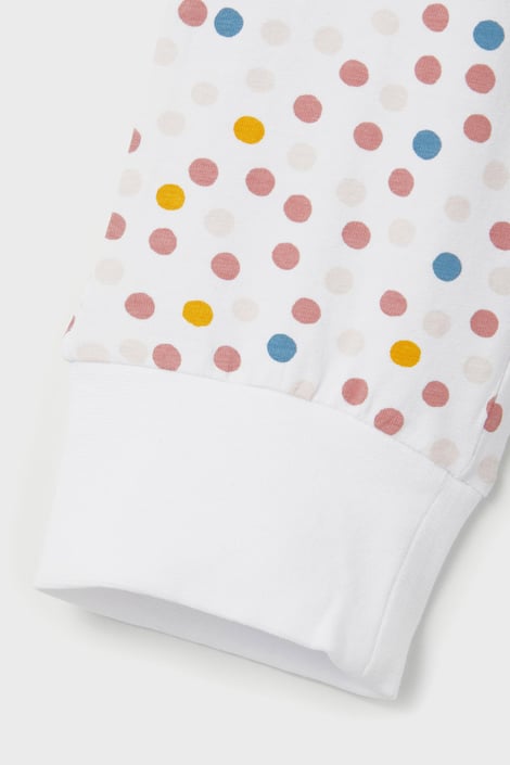 Name it Real unicorn lány pizsama organikus pamutból. A hosszú ujjú póló egyszarvú mintával díszített, a nadrágot apró pöttyök borítják.