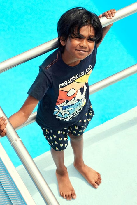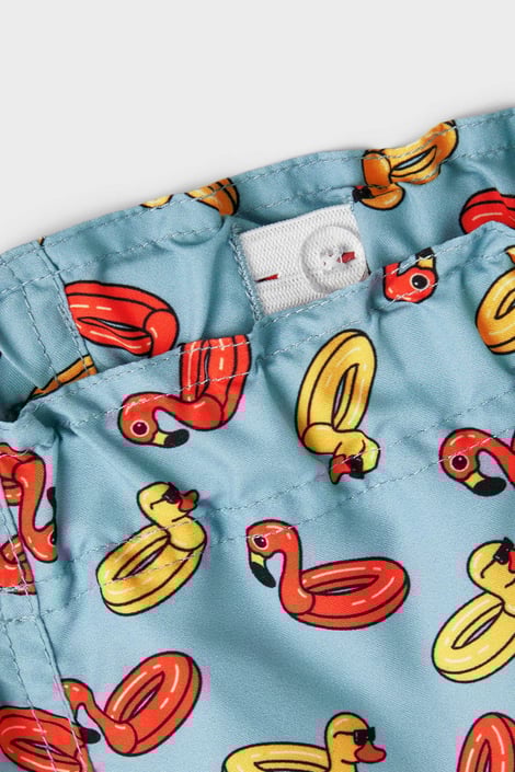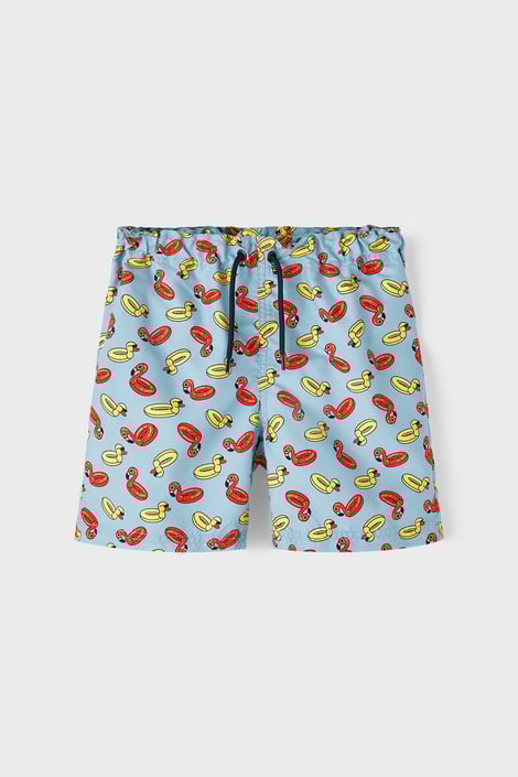 A Name it Zimil fiú fürdősort gyorsan száradó, újrahasznosított poliészterből készült. Az anyag kiválóan ellenálló a napsugarakkal, klórral és tengeri vízzel szemben.