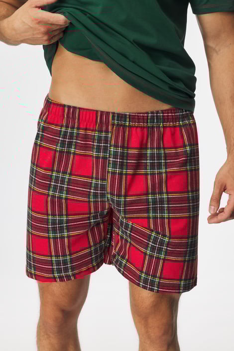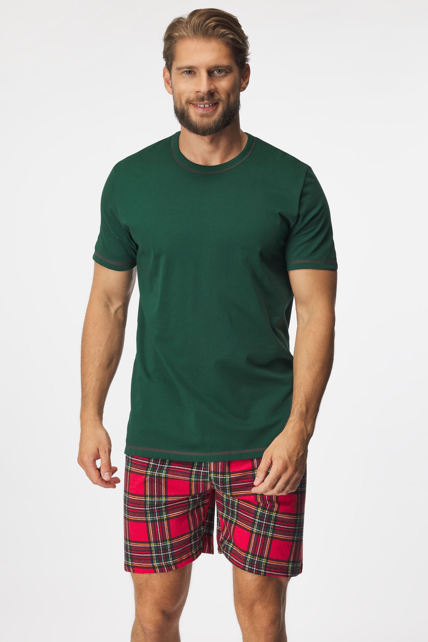 Narwik II férfi pizsama, 100%-os pamutból. Sötétzöld színben készült póló és kockás rövidnadrág.
