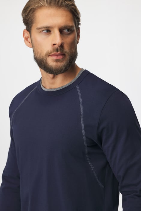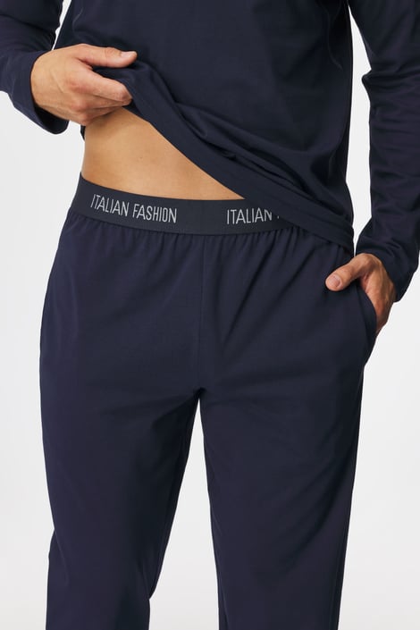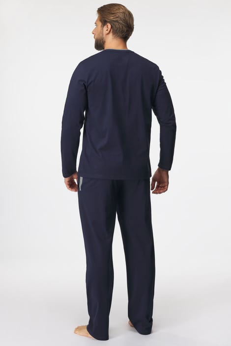 Niko férfi pamut pizsama, minimalista dizájnban. Hosszú ujjaknak és nadrágszáraknak köszönhetően ideális választás hűvös éjszakákra.