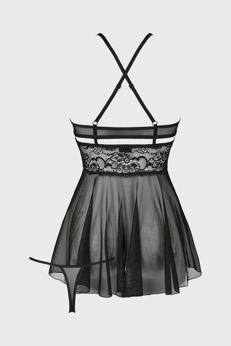 Az erotikusLaura szettben ellenállhatatlan leszel! A virágmintás csipke és áttetsző tüll kombinációja nagyon csábító.