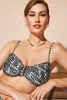 A levehető pántokkal ellátott Onyx I bandeau fürdőruhafelső tökéletes barnulást biztosít. A kosarai kivehető betétekkel vannak ellátva a dekoltázs egyéni formázásához, középen fémcsat díszíti. Az Astratex szakértői által tervezett darab fekete-fehér kivitelben.