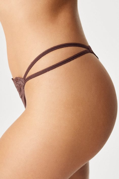A szaténmegjelenésű Origins Shiny Micro tangát csipke és dupla díszes gumiszalagok díszítik az oldalain.