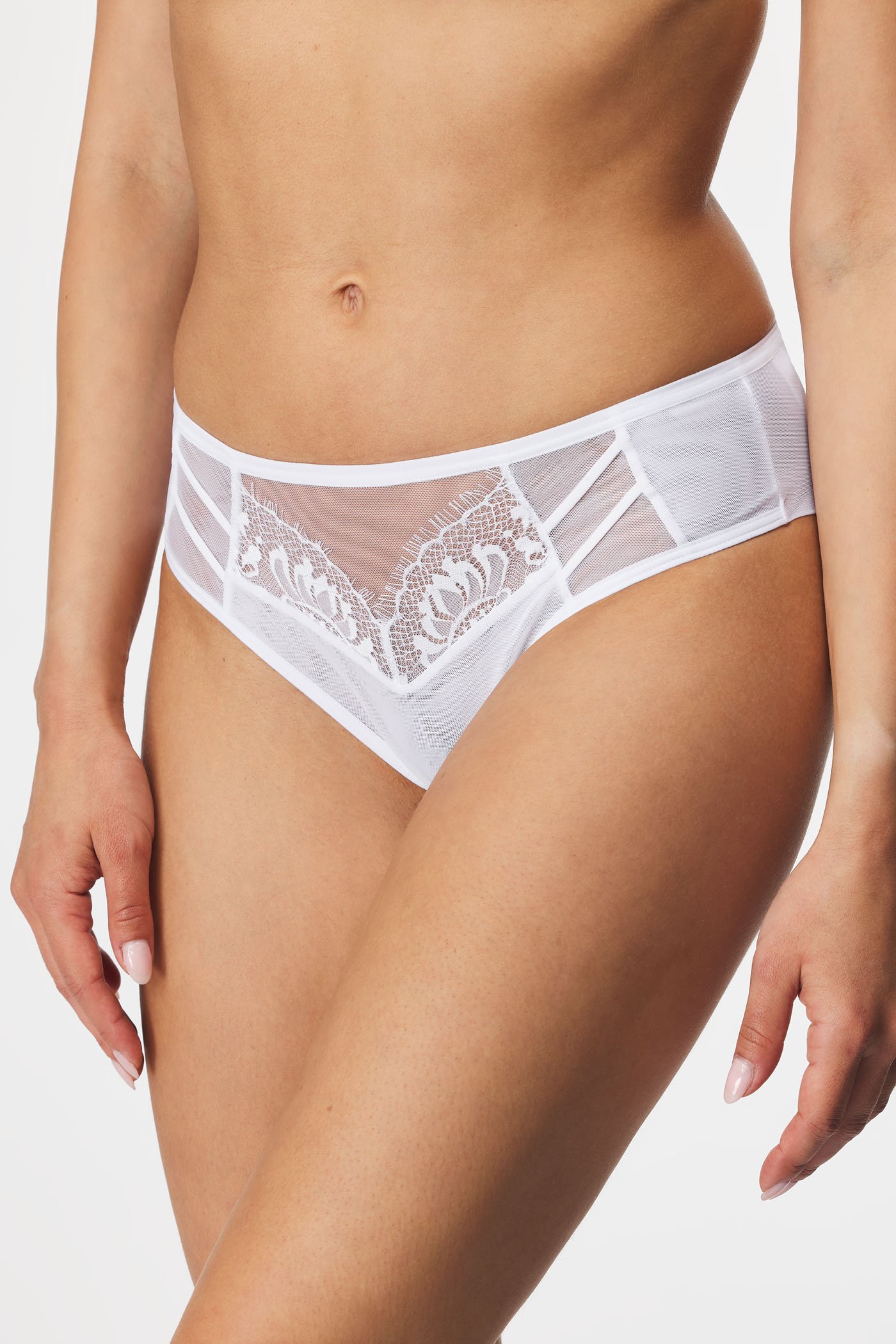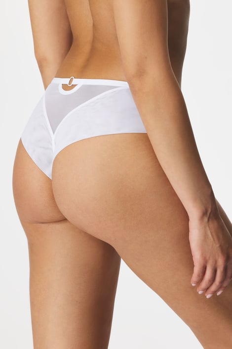 A brazil szabású Paradise II női alsó egy elegáns fehérnemű! Mérsékelten áttetsző tüllből és gyengéd virágmintás csipkéből készült. Az előnyös szabás minden testalkatnak jól áll.