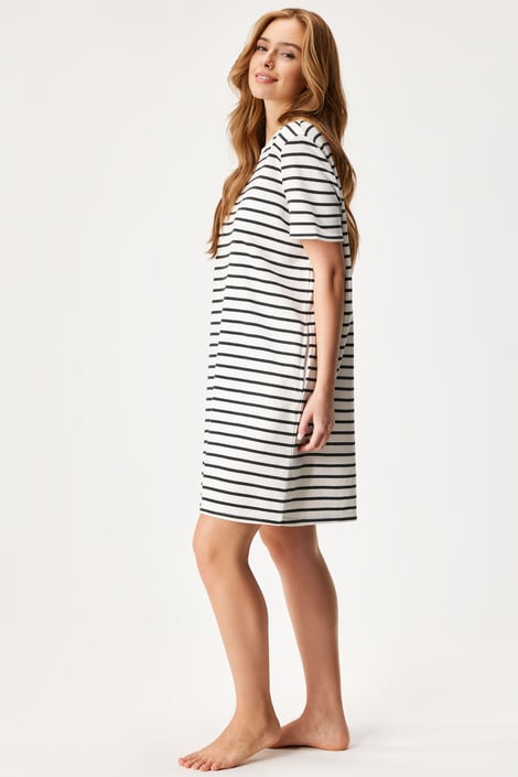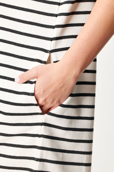 A csíkos mintás, egyszerű póló szabásban készült Pieces Chilli ruha ideális választás a szabadidős tevékenységekhez. A magas pamut tartalom és bővebb fazon garancia a tökéletes kényelemre.