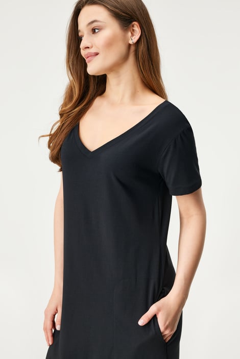 A kellemes pamut anyagból és légáteresztő tencelből készült egyszínű Pleas Macie ruha ideális választás a szabadidős tevékenységekhez. Komfortos bővebb fazonban készült, praktikus oldalsó zsebekkel.