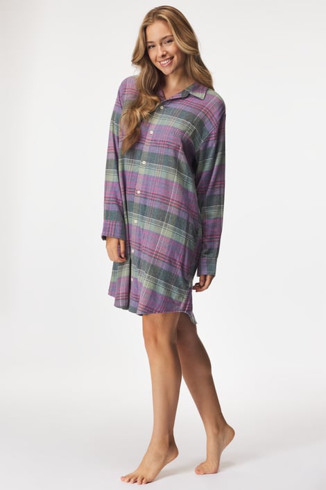 Ralph Lauren Purple Plaid hálóing, trendi ing szabásban. A pamut és viszkóz kombinációja érintésre nagyon kellemes. Ráadásul hűvösebb estéken kellemes melegérzetet biztosít.