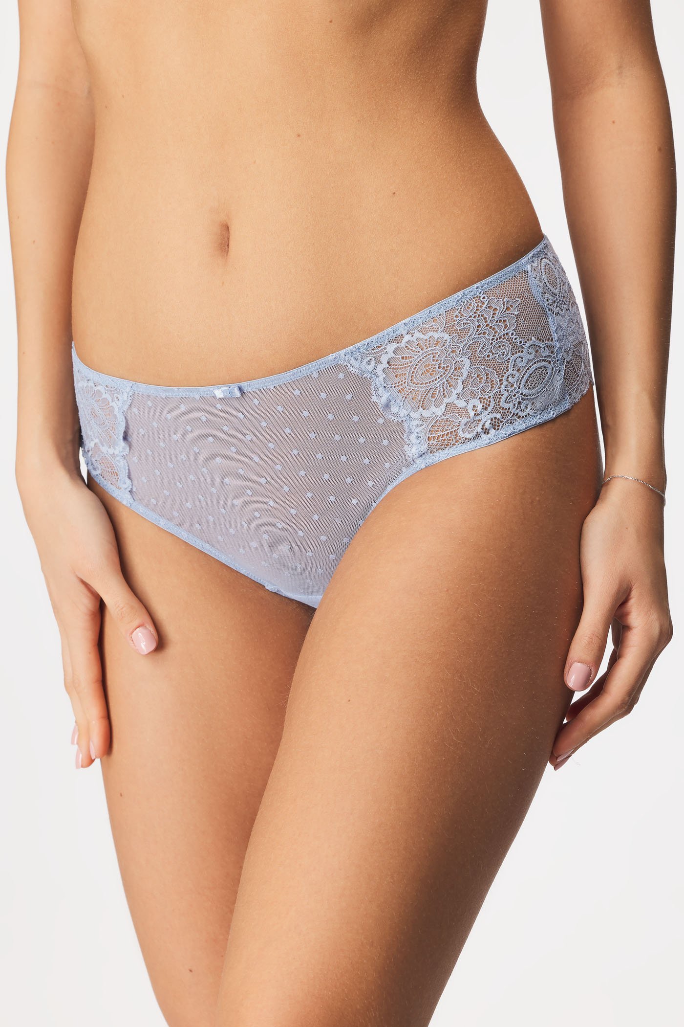 A Recent Viewpoint tanga gyengéden kihangsúlyozza a női vonalakat. A tanga elülső oldala apró pöttyökkel díszített, könnyed tüllből készült, a csípő- és a hátoldali rész hímzett csipkéből.