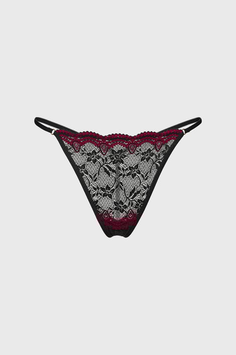 Red Waves erotikus tanga a csábítás pillanataira. A tanga elülső része érzéki áttetsző csipkéből készült, amely kontrasztos piros hímzéssel díszített.