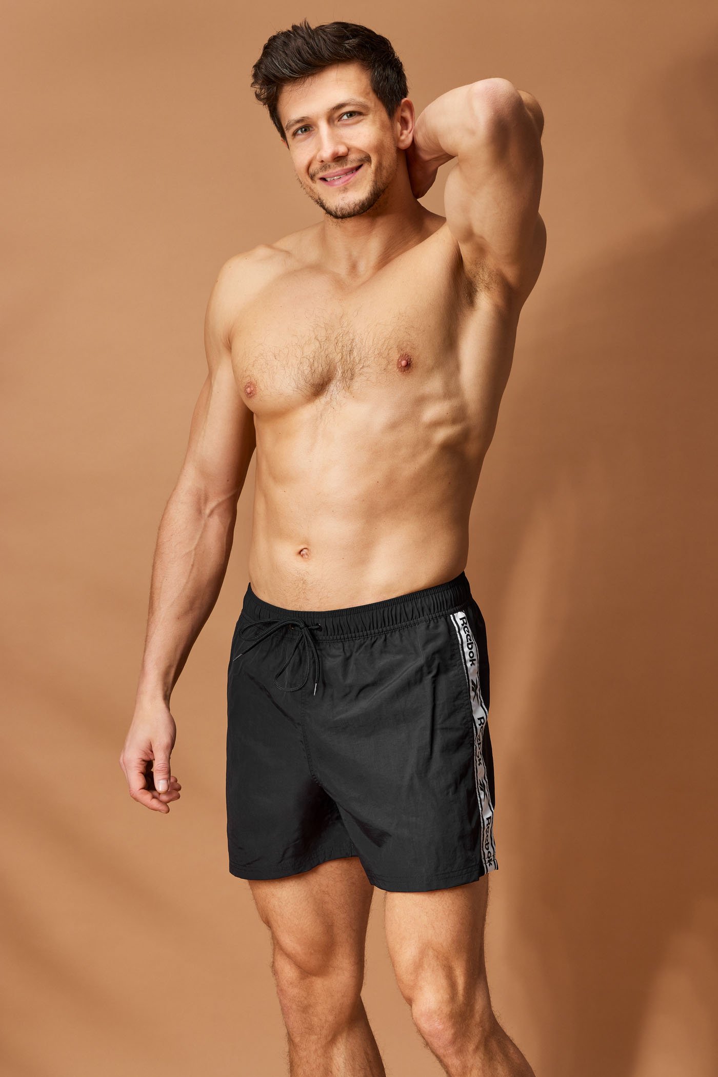 Férfi fürdősort a Reebok sportmárka divatműhelyéből. Könnyed fürdőruha anyagból készült, belső oldalon finom hálós anyaggal bélelve.