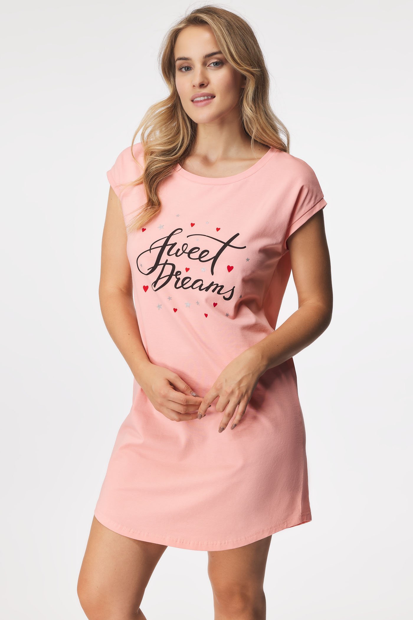 Sweet Dreams női hálóing, kellemes pamut anyagból. Gyengéd rózsaszínű kivitelben, decens felirattal és csillogó részletekkel díszítve.