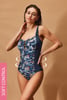 Tasmania egyrészes fürdőruha, alakformáló fazonban. A karcsúbb sziluettről nem csak a sötétszínű oldalsó részek gondoskodnak, de főként az elülső oldali alakformáló bélés. A merevítők nélküli, puha kosarak nagyon kényelmesek.