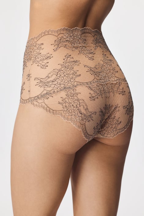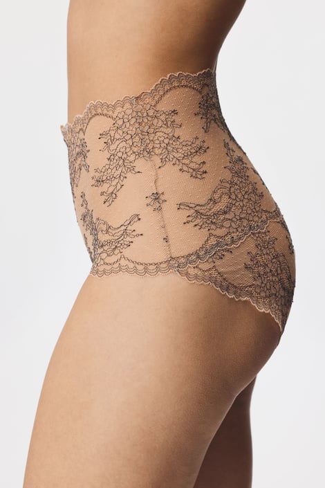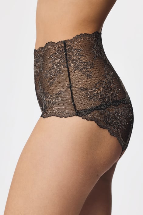 Tender Tattoo extra magasított, klasszikus szabású női alsó csipkéből. A finom csipke érintésre puha, decensen áttetsző. Derékrészen gumi helyett csipkéből.
