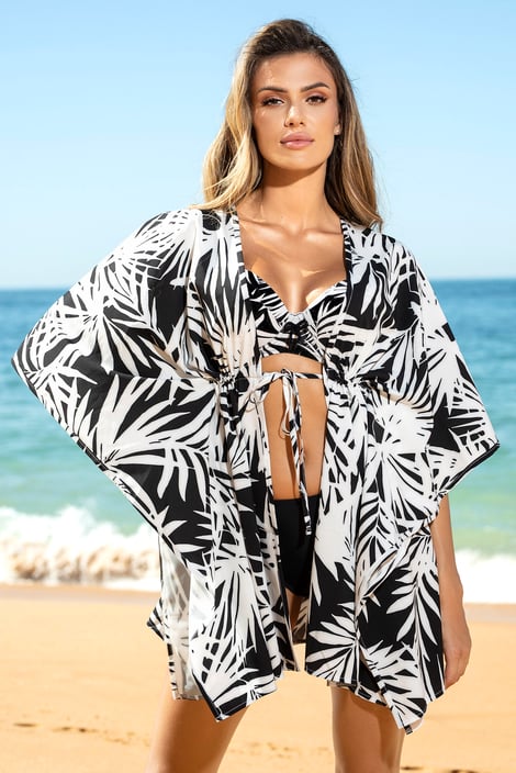 Tenley Short tunika, attraktív trópusi dizájnban. A bővebb szabás légiesen szellős, ezért ideális választás a forró nyári napokra a strandon. Keblek alatt megköthető.