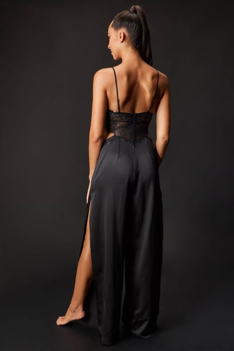 Elegáns és kifinomult. Ez a Zoe erotikus overál, könnyű csipkéből és puha szaténból. A divatos szabás kiemeli a csípővonalat, a magasan kivágott részek pedig érzékien fedik fel a lábakat.